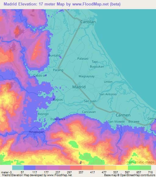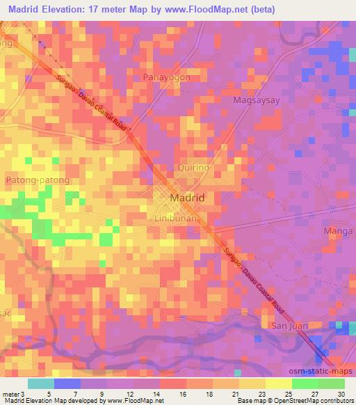 Note:Please note that Madrid,Philippines Elevation Map is in beta.