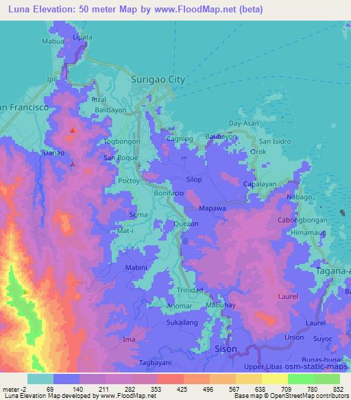 Note:Please note that Luna,Philippines Elevation Map is in beta.