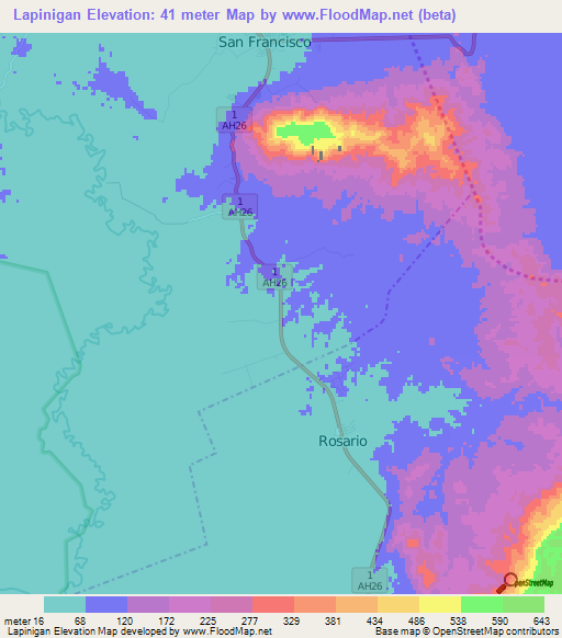 Note:Please note that Lapinigan,Philippines Elevation Map is in beta.