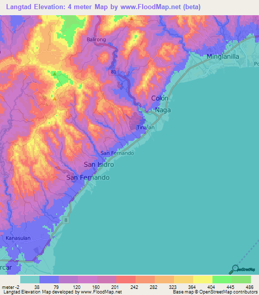 Note:Please note that Langtad,Philippines Elevation Map is in beta.