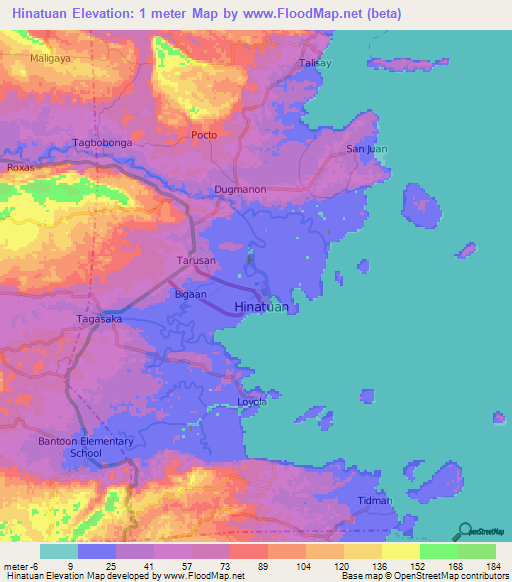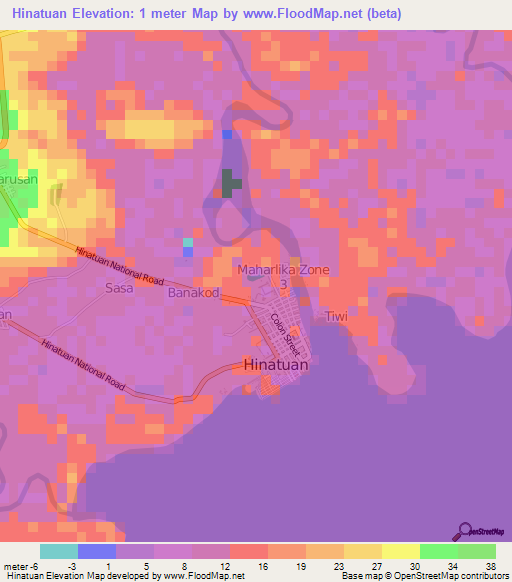 Note:Please note that Hinatuan,Philippines Elevation Map is in beta.