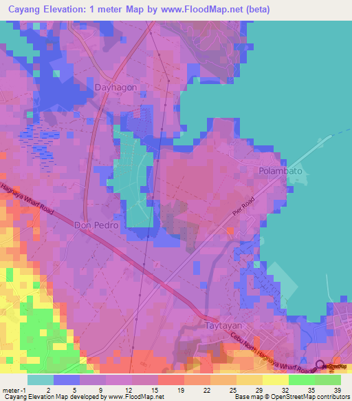 Note:Please note that Cayang,Philippines Elevation Map is in beta.