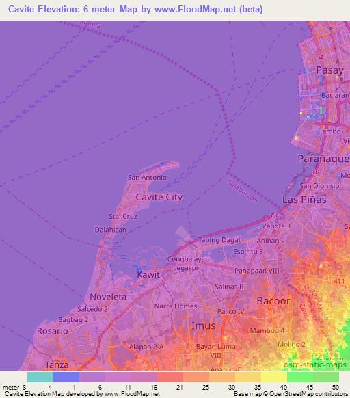 Note:Please note that Cavite,Philippines Elevation Map is in beta.