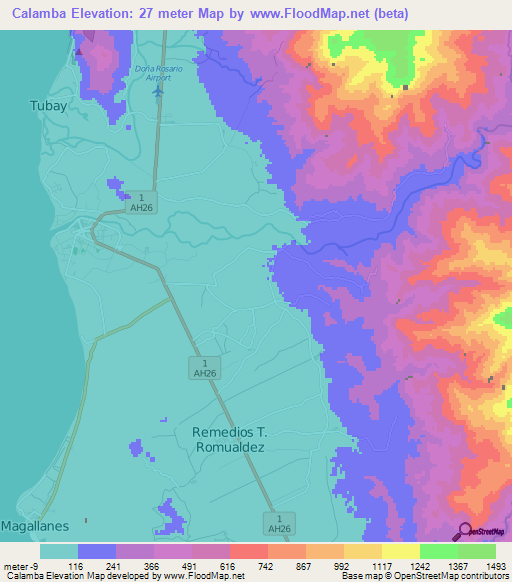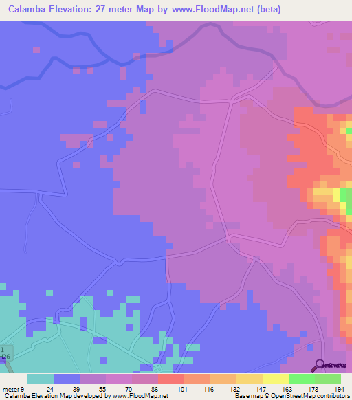 Note:Please note that Calamba,Philippines Elevation Map is in beta.