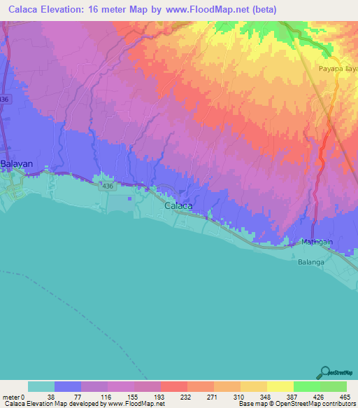 Note:Please note that Calaca,Philippines Elevation Map is in beta.