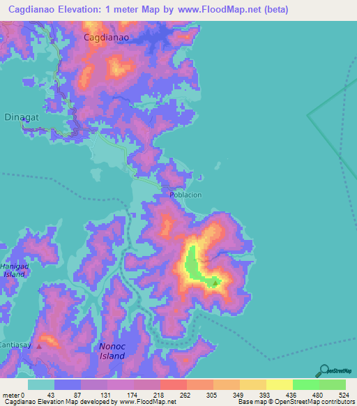 Note:Please note that Cagdianao,Philippines Elevation Map is in beta.