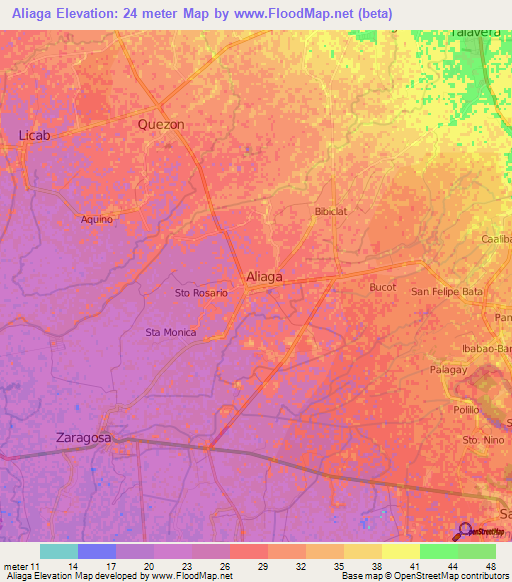Note:Please note that Aliaga,Philippines Elevation Map is in beta.