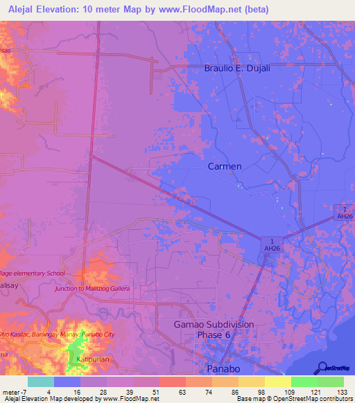 Note:Please note that Alejal,Philippines Elevation Map is in beta.