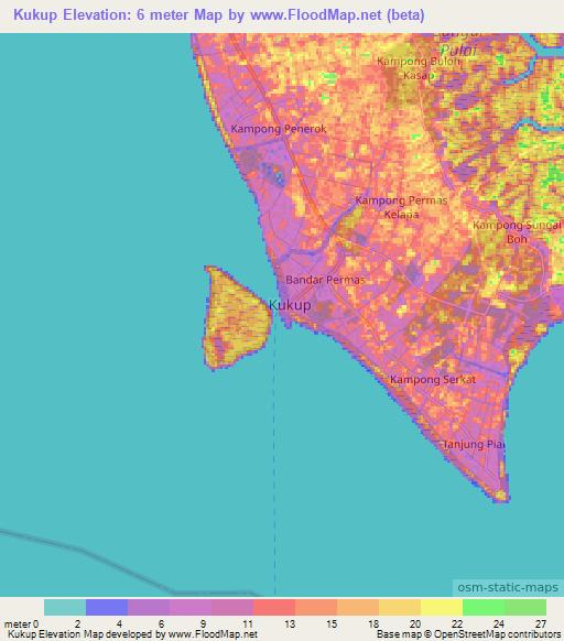 Note:Please note that Kukup,Malaysia Elevation Map is in beta.
