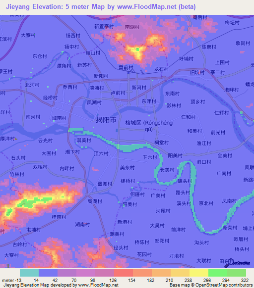 Note:Please note that Jieyang,China Elevation Map is in beta.