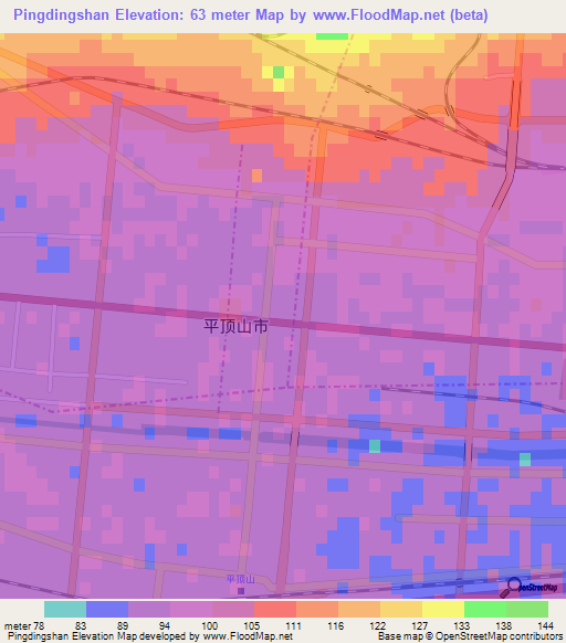 Note:Please note that Pingdingshan,China Elevation Map is in beta.