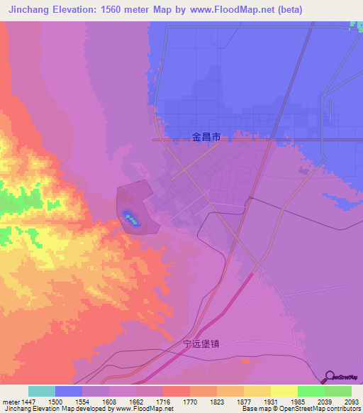 Note:Please note that Jinchang,China Elevation Map is in beta.