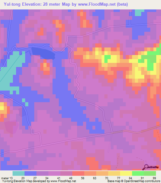 Yul-tong,North Korea Elevation is 28 meter