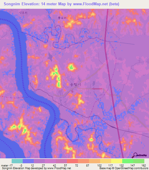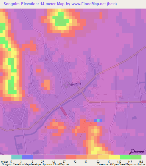 Note:Please note that Songnim,North Korea Elevation Map is in beta.