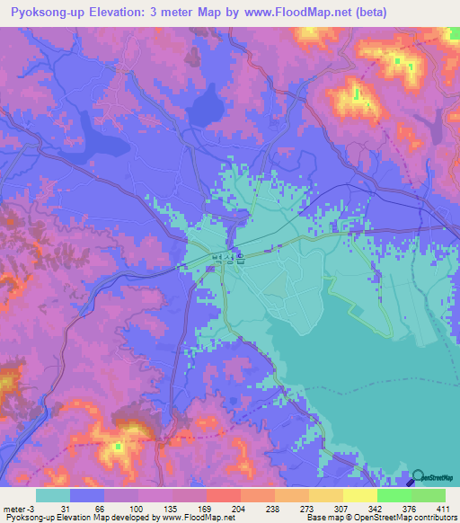 You have to give credit by linking to this Pyoksong-up,North Korea Elevation Map page.