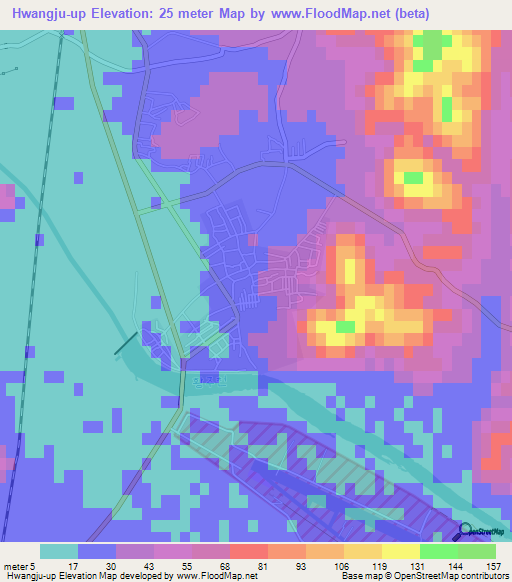 Note:Please note that Hwangju-up,North Korea Elevation Map is in beta.