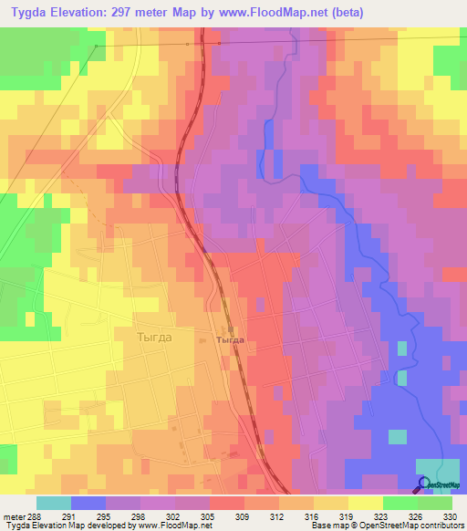 Below is the Elevation map of Tygda,Russia, which displays range of elevation with different colours.