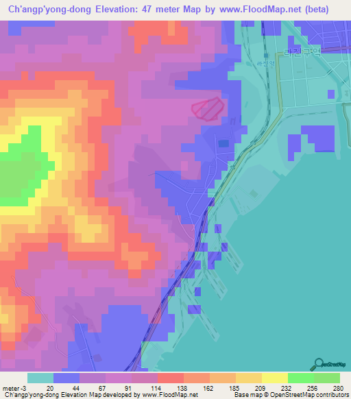 Note:Please note that Ch'angp'yong-dong,North Korea Elevation Map is in beta.