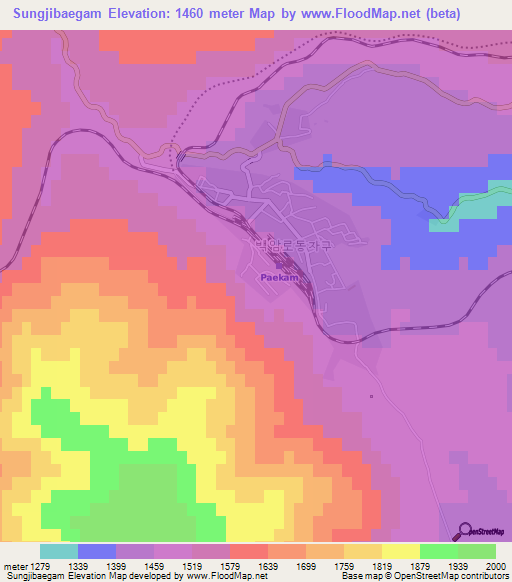 Note:Please note that Sungjibaegam,North Korea Elevation Map is in beta.