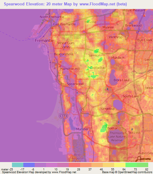 Note:Please note that Spearwood,Australia Elevation Map is in beta.