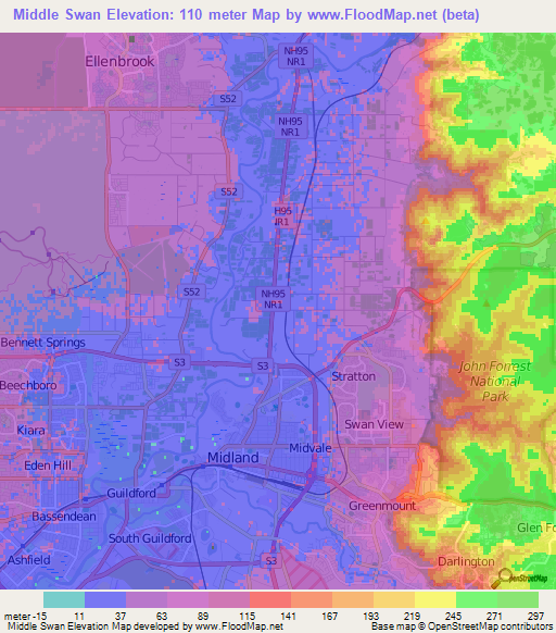 Note:Please note that Middle Swan,Australia Elevation Map is in beta.