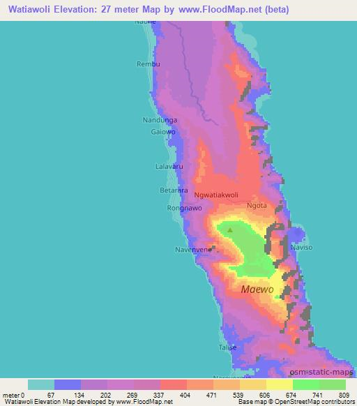 Note:Please note that Watiawoli,Vanuatu Elevation Map is in beta.
