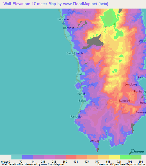 Note:Please note that Wali,Vanuatu Elevation Map is in beta.