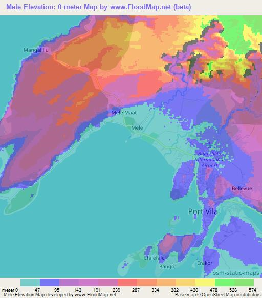 Note:Please note that Mele,Vanuatu Elevation Map is in beta.