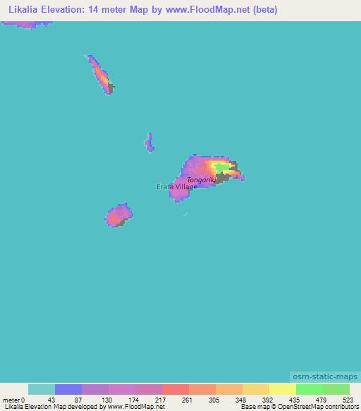 Note:Please note that Likalia,Vanuatu Elevation Map is in beta.