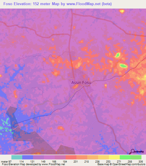 Note:Please note that Foso,Ghana Elevation Map is in beta.