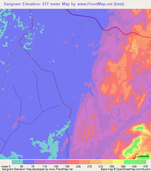 You have to give credit by linking to this Sangnam,Equatorial Guinea Elevation Map page.