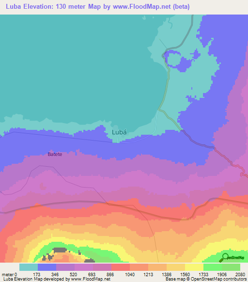 Note:Please note that Luba,Equatorial Guinea Elevation Map is in beta.