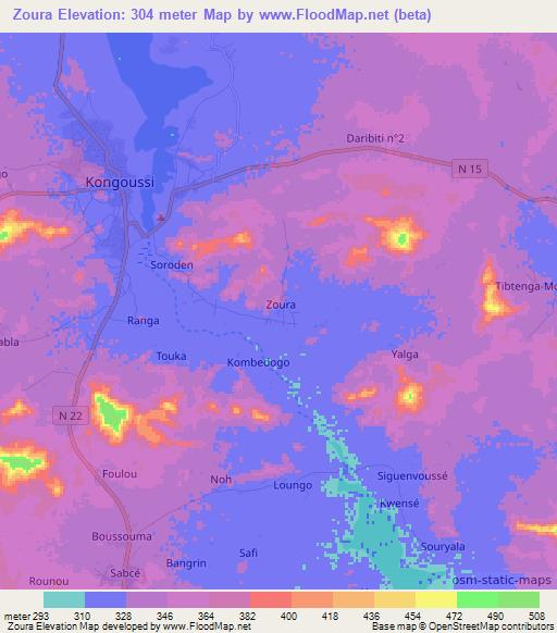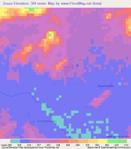 Note:Please note that Zoura,Burkina Faso Elevation Map is in beta.