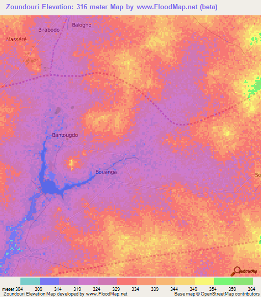 Note:Please note that Zoundouri,Burkina Faso Elevation Map is in beta.
