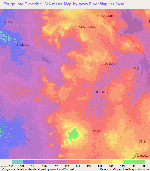 Note:Please note that Zougouma,Burkina Faso Elevation Map is in beta.