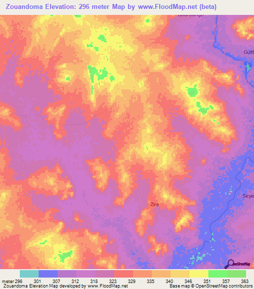 Note:Please note that Zouandoma,Burkina Faso Elevation Map is in beta.