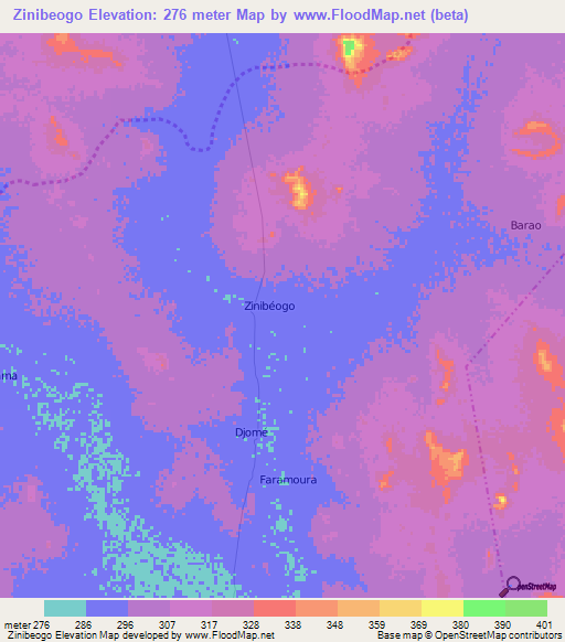Note:Please note that Zinibeogo,Burkina Faso Elevation Map is in beta.