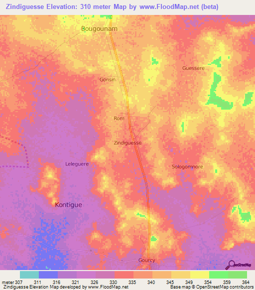 Note:Please note that Zindiguesse,Burkina Faso Elevation Map is in beta.