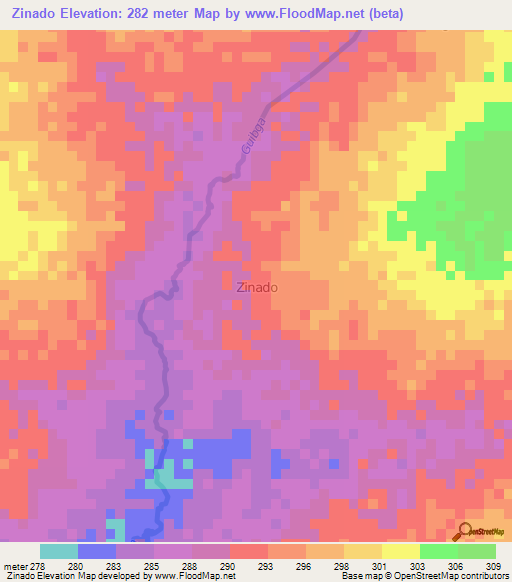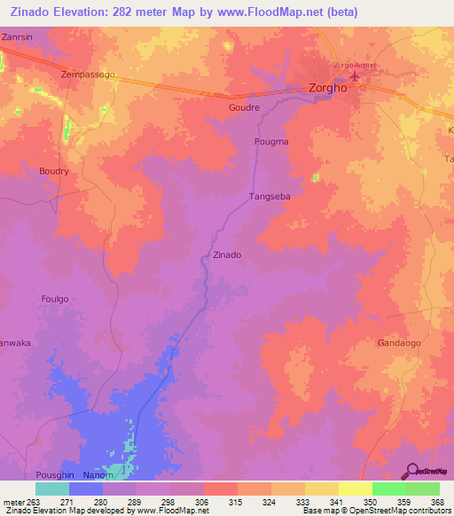 Note:Please note that Zinado,Burkina Faso Elevation Map is in beta.