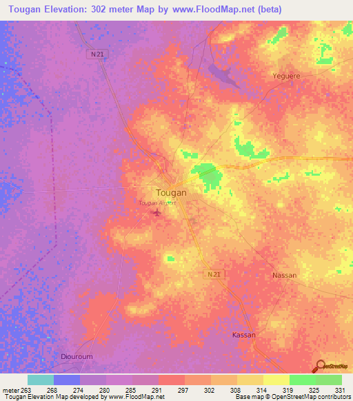 Note:Please note that Tougan,Burkina Faso Elevation Map is in beta.