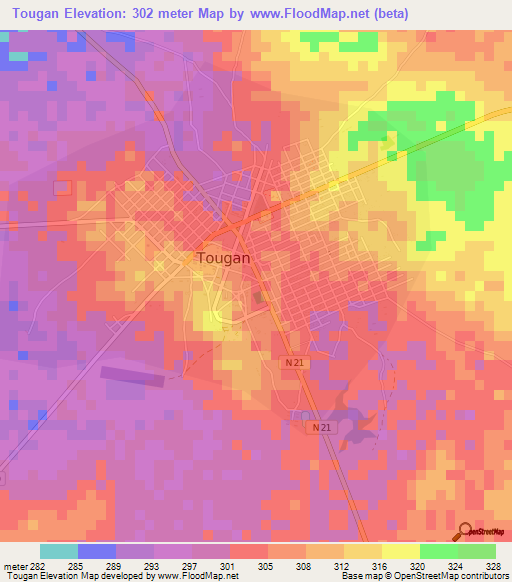 You have to give credit by linking to this Tougan,Burkina Faso Elevation Map page.