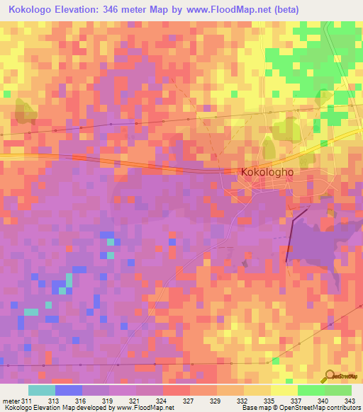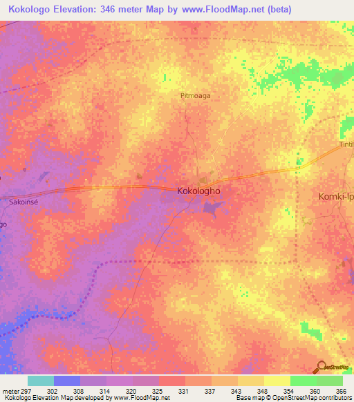 Note:Please note that Kokologo,Burkina Faso Elevation Map is in beta.