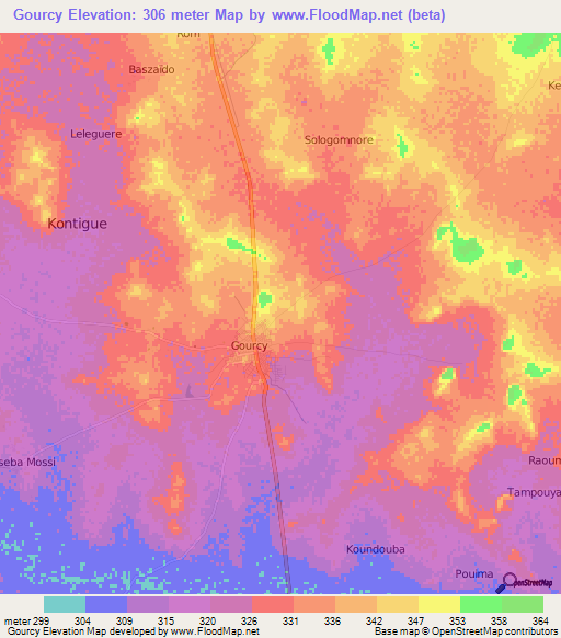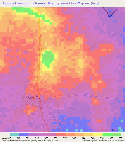 Note:Please note that Gourcy,Burkina Faso Elevation Map is in beta.