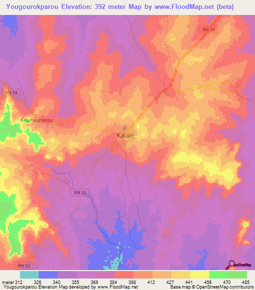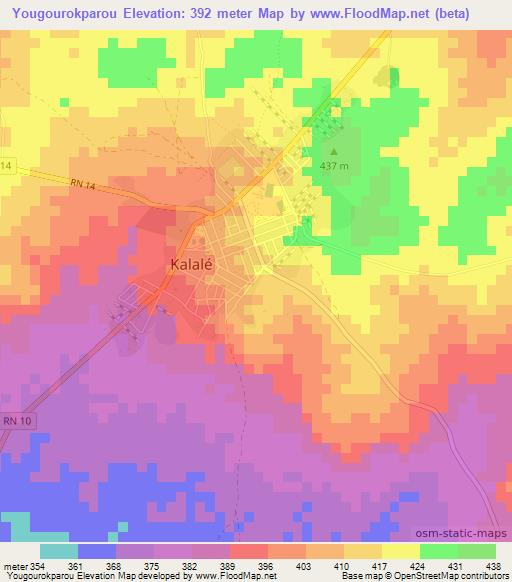 Note:Please note that Yougourokparou,Benin Elevation Map is in beta.