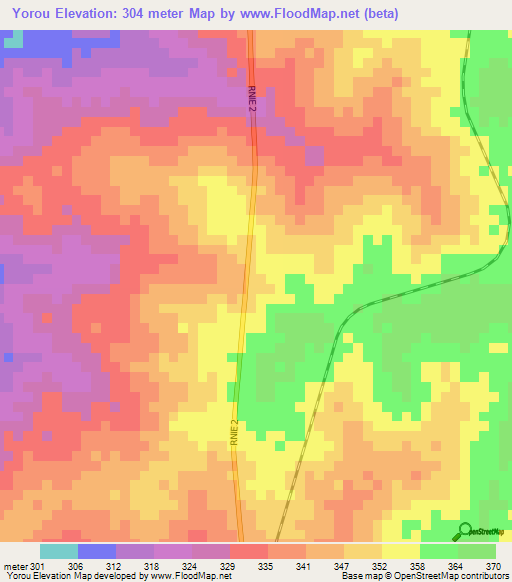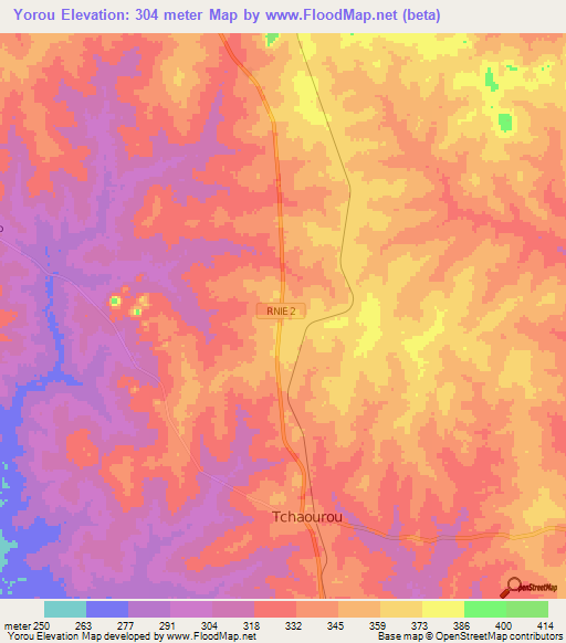 Note:Please note that Yorou,Benin Elevation Map is in beta.