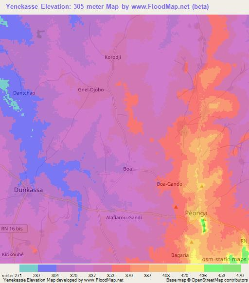 Note:Please note that Yenekasse,Benin Elevation Map is in beta.