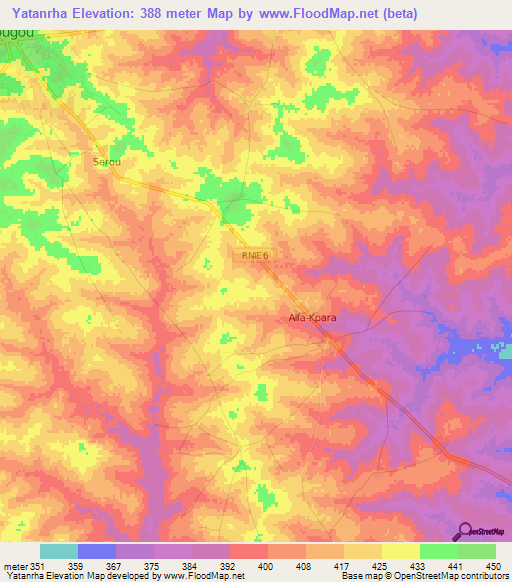This Yatanrha,Benin Elevation Map is licensed under CC BY-SA.