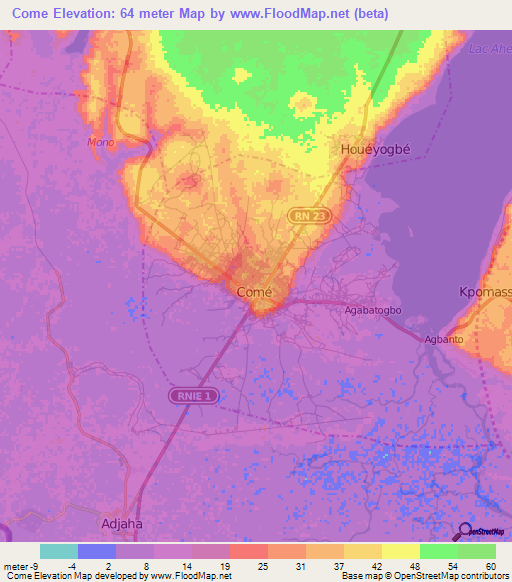 Note:Please note that Come,Benin Elevation Map is in beta.