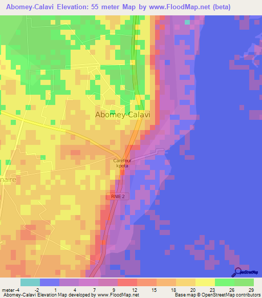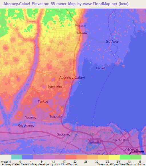 Note:Please note that Abomey-Calavi,Benin Elevation Map is in beta.