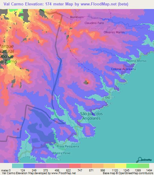Note:Please note that Val Carmo,Sao Tome and Principe Elevation Map is in beta.